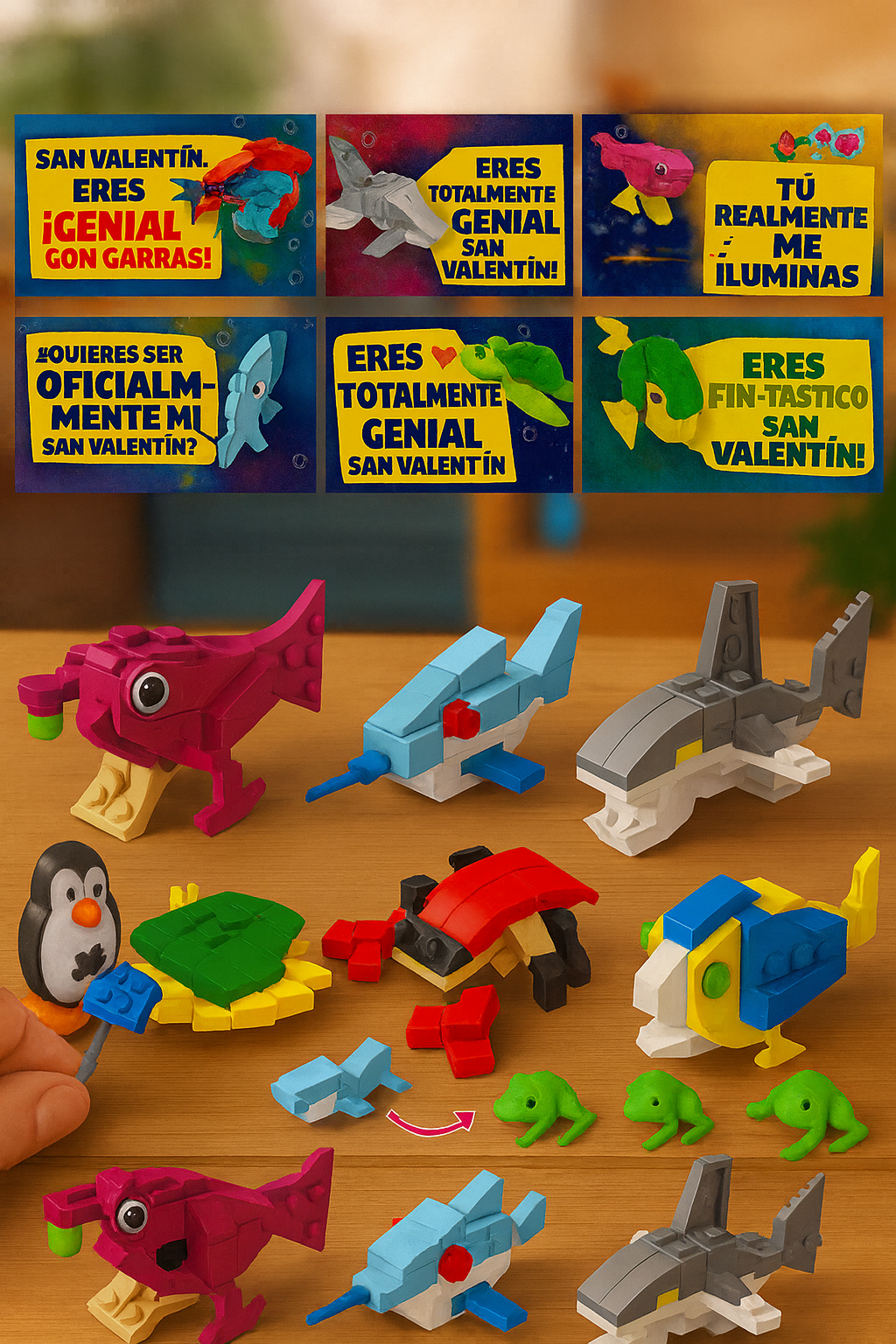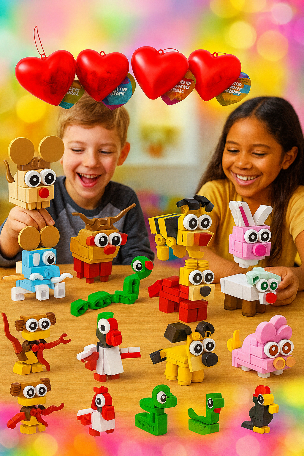 Tarjetas de San Valentín con Bloques de Animales | 24/26/28 Piezas | Cajas de Corazón + Notas de Amor | Ideal para Niños y Clases